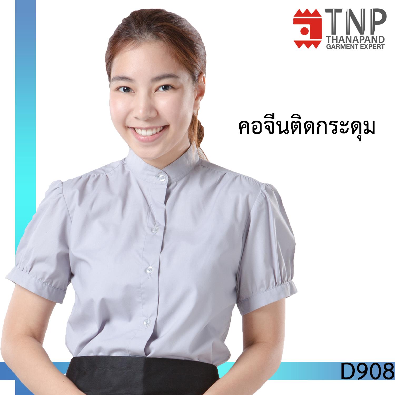 ชุดพนักงานเสิร์ฟ คอตั้ง(คอจีน) แขนตุ๊กตา กระดุมพลาสติกใส 1 แถว