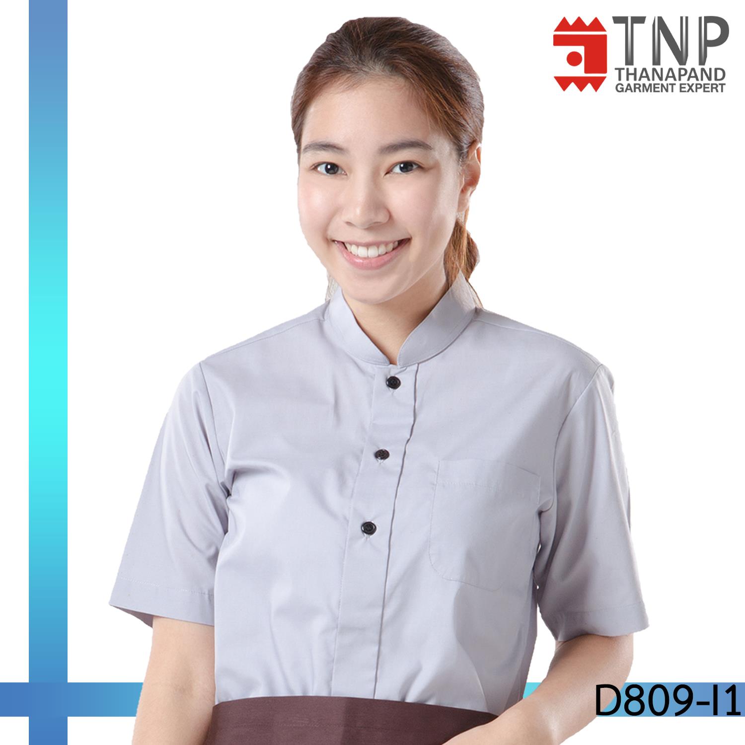 เสื้อพนักงานเสิร์ฟ แขนสั้น กระดุมหน้า รหัส:D809