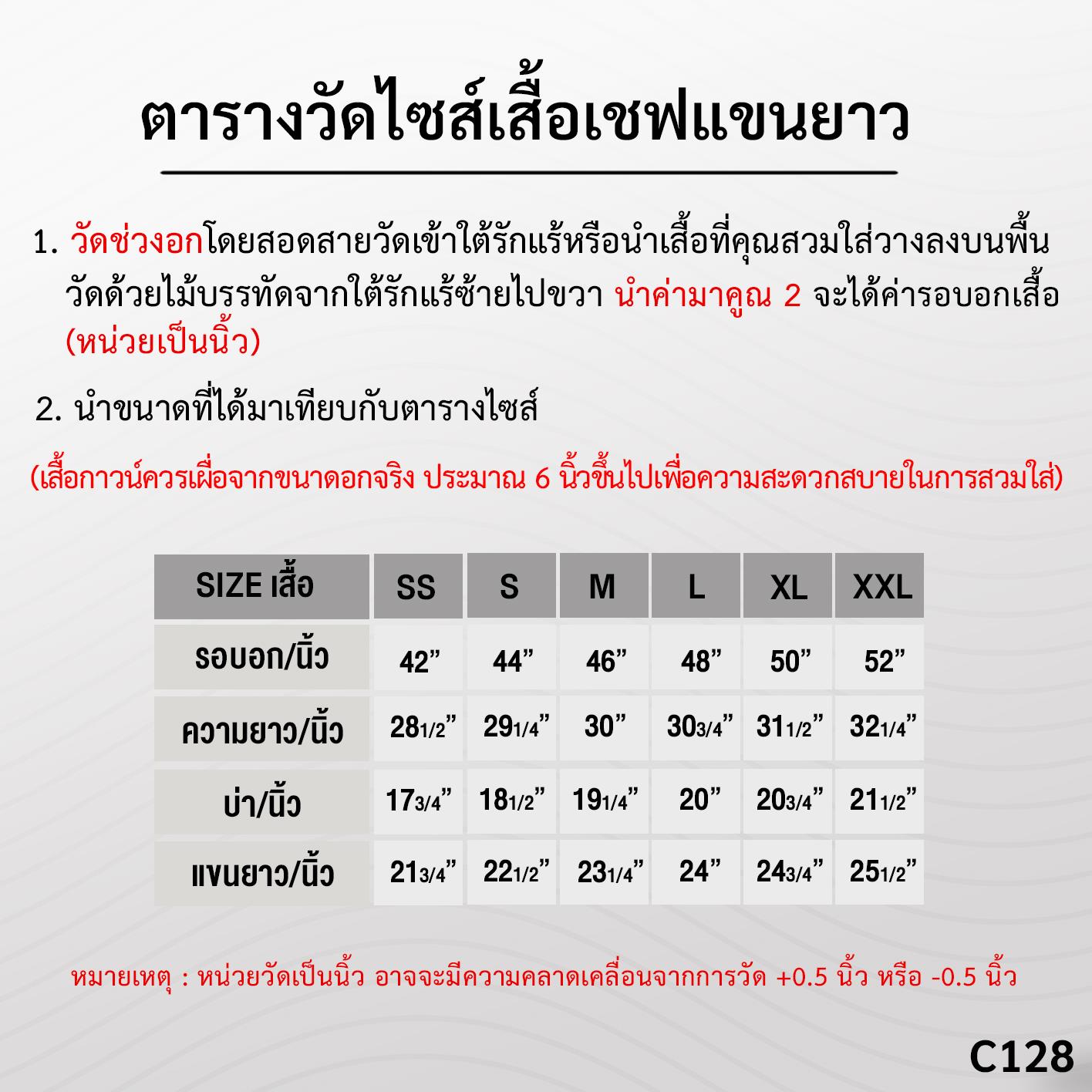 เสื้อเชฟแขนยาวคอจีน แต่งกุ๊นบ่า/ปลายแขน รหัส: C128