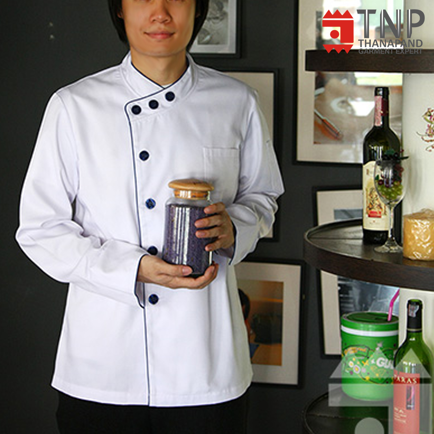 เสื้อเชฟแขนยาว คอป้าย แต่งกุ๊นสี รหัส:CJINF