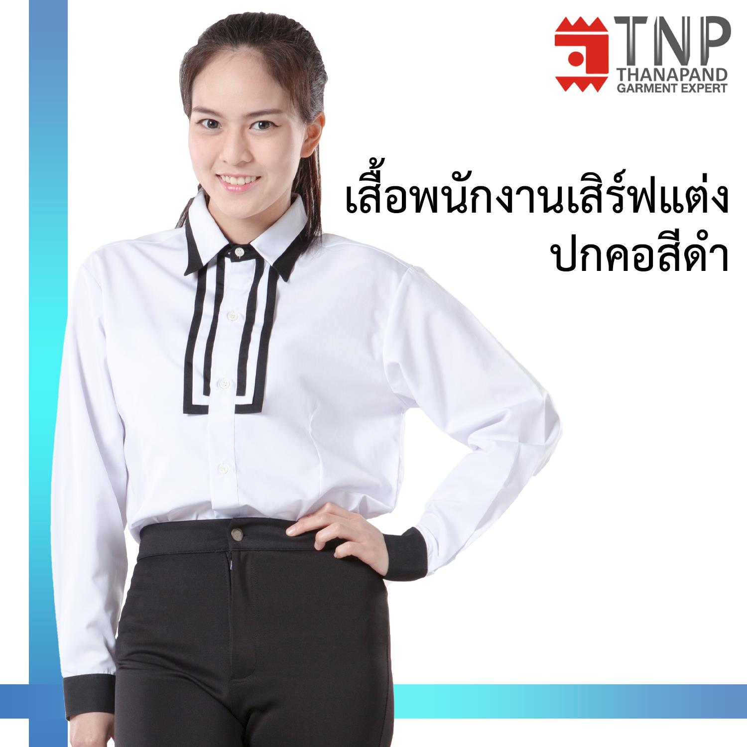 เสื้อพนักงานเสิร์ฟ คอจีน(คอตั้ง)แต่งแถบ ...