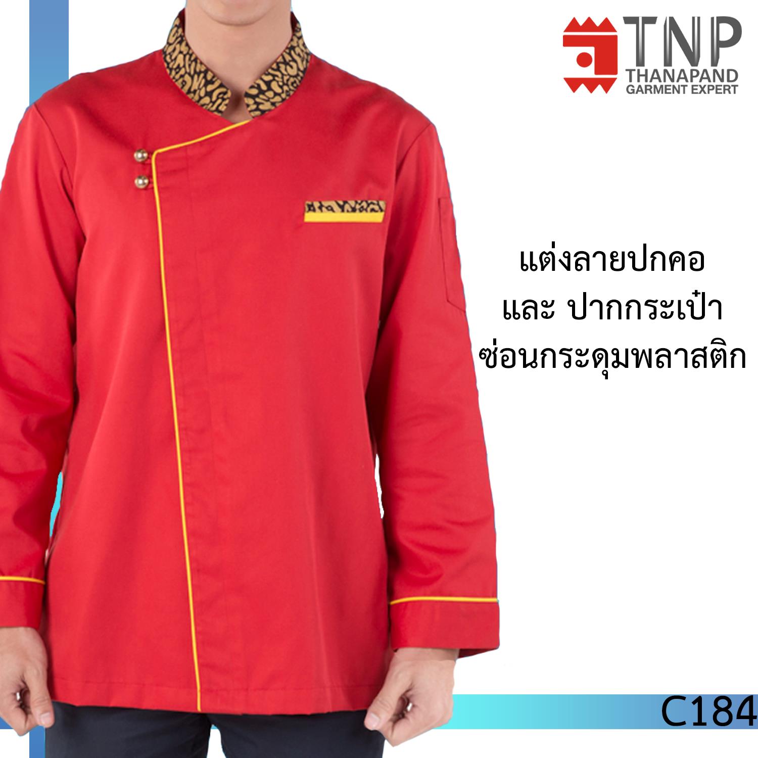 เสื้อเชฟแขนยาว คอตั้ง เเต่งลาย รหัส: C184